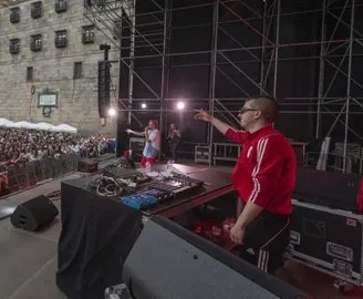 Montaje y técnico de escenario e monitores. Como freelance con MIRAXE